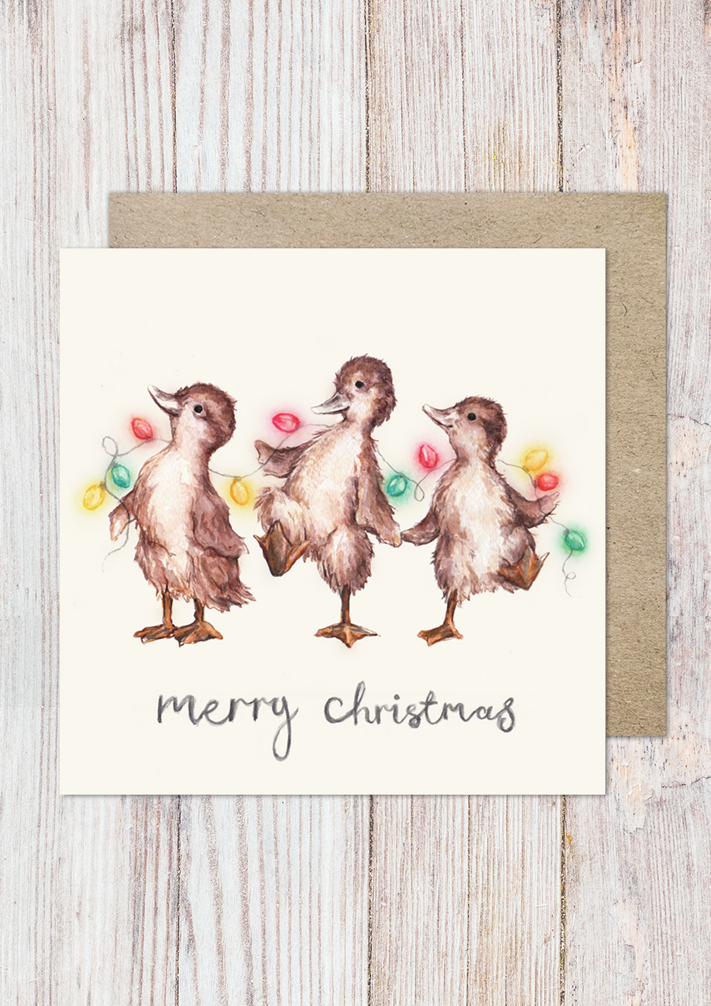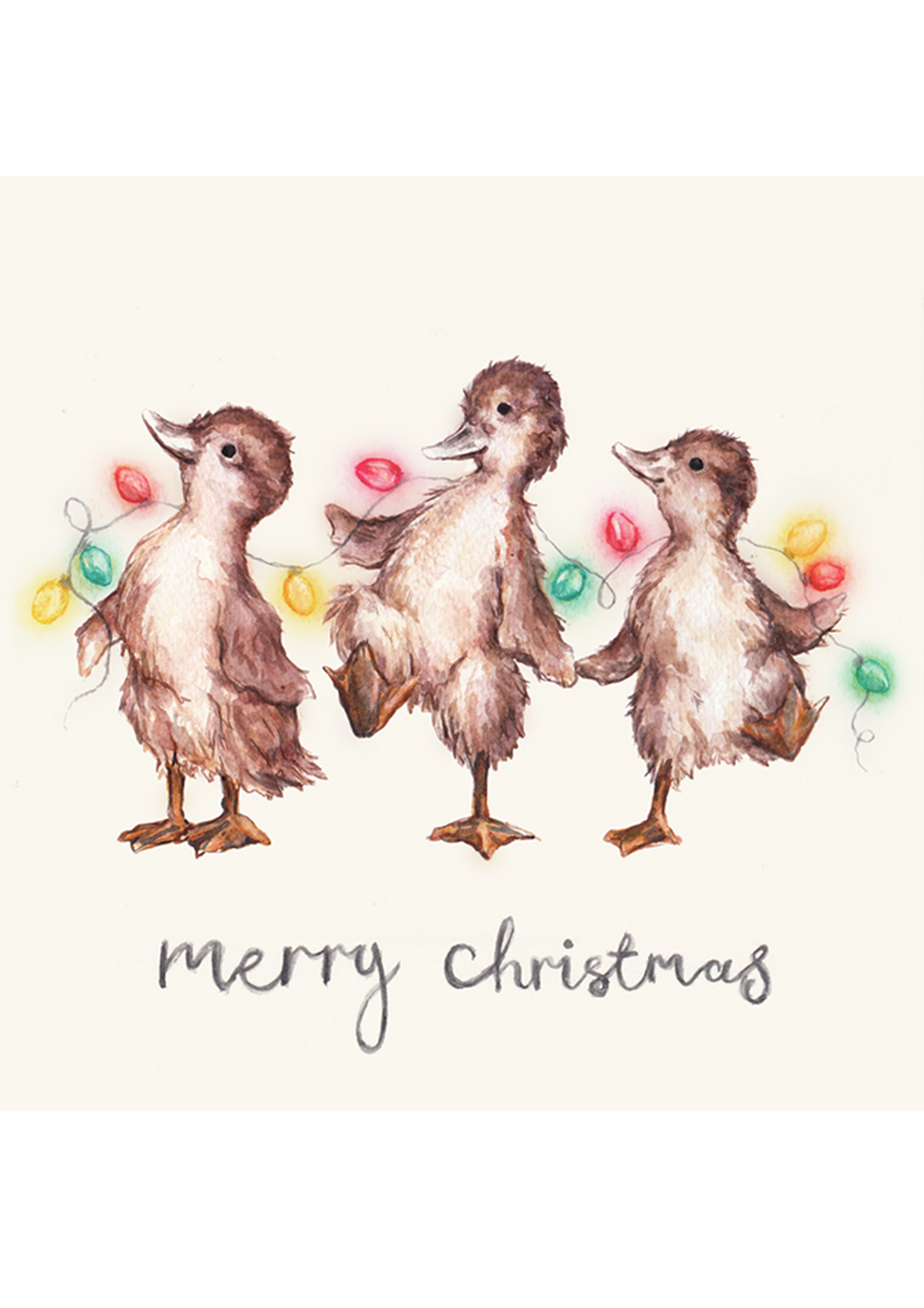 These greeting cards are printed with my original Watercolour Illustration of Dotty, Deidre & Daz, the Christmas Dancing Ducklings.