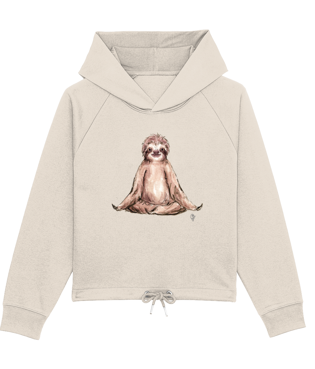 Is there anything more zen than a yoga sloth? Practicing his yoga in sukhasana pose is stanley the sloth, hand painted by me in ink and watercolour, this illustration is expertly printed onto a soft cream hoodie.